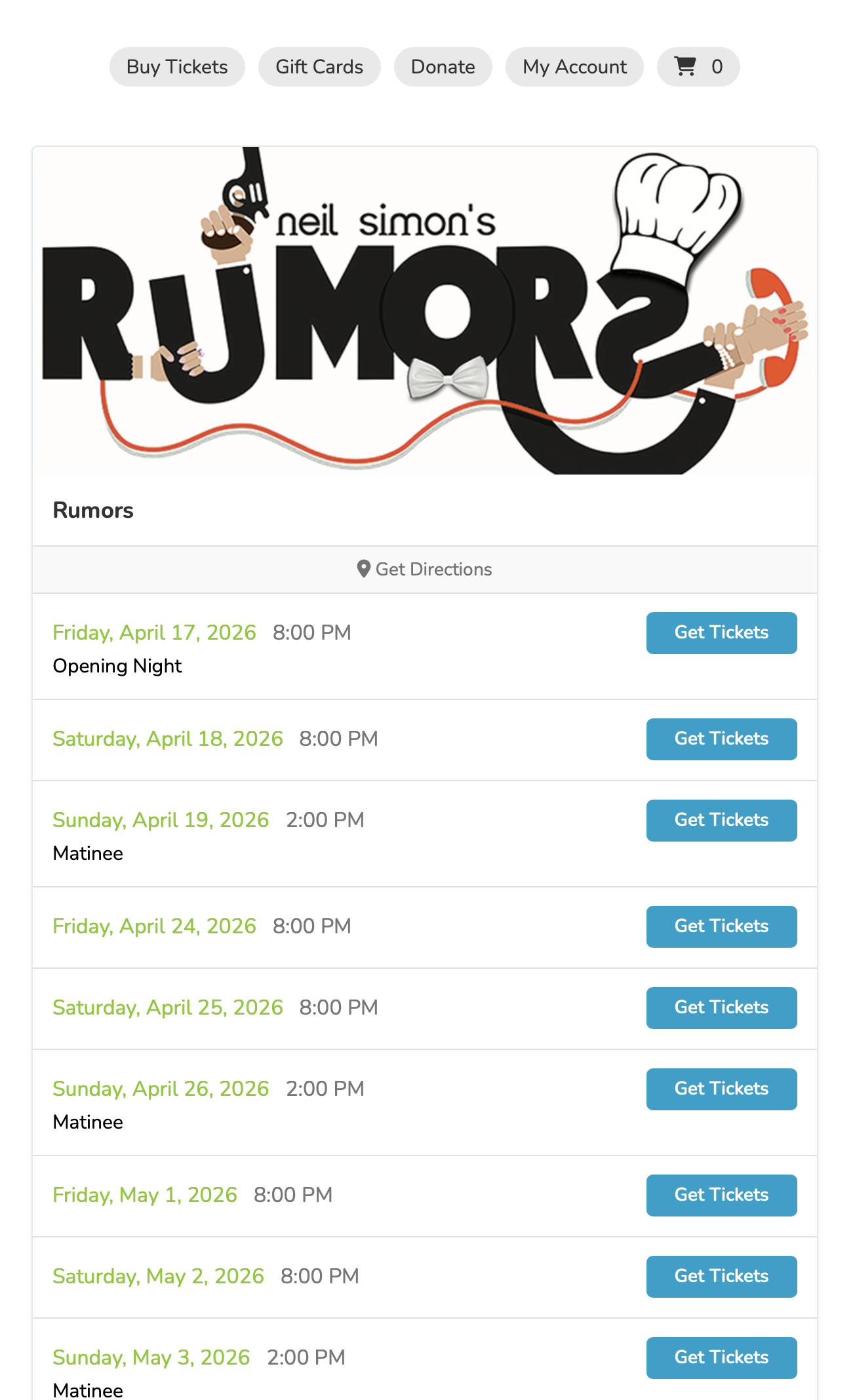 Performances:April 17th – May 10thFriday / Saturday EveningsDoors Open: 7:00 PMShow Starts: 8:00 pmSunday MatineesDoors Open: 1:00 PMShow Starts: 2:00 pm